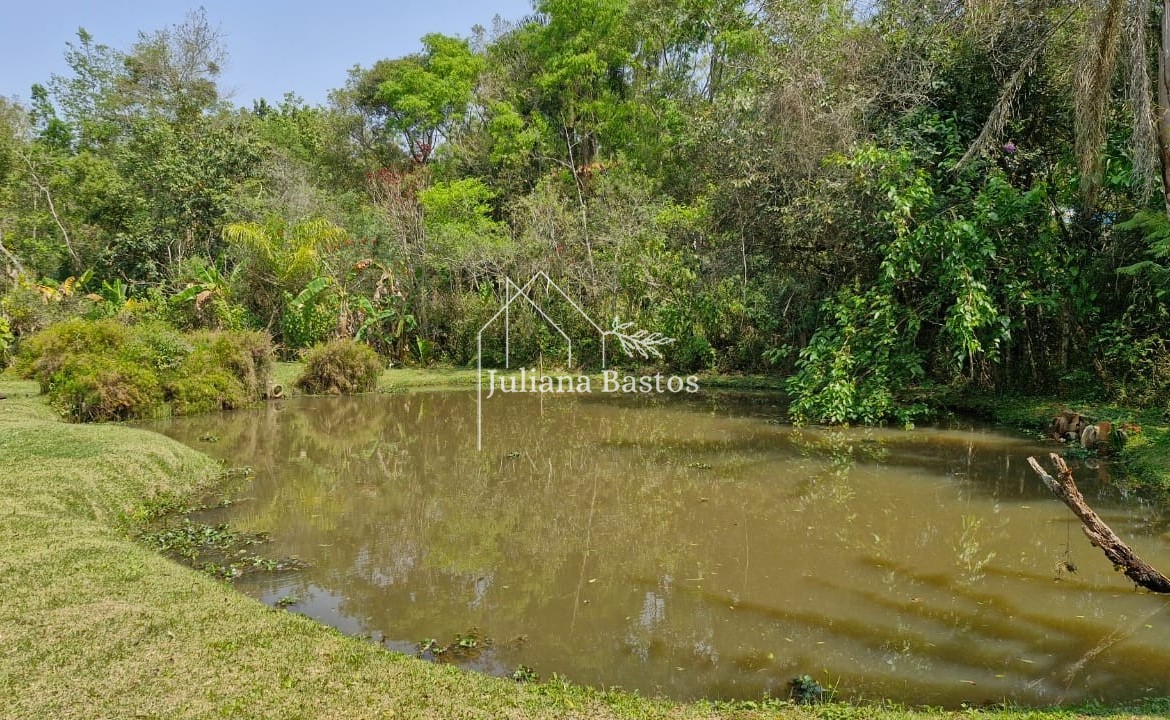 A chácara possui um encantador lago que se torna o coração do espaço, proporcionando um ambiente natural e relaxante.
