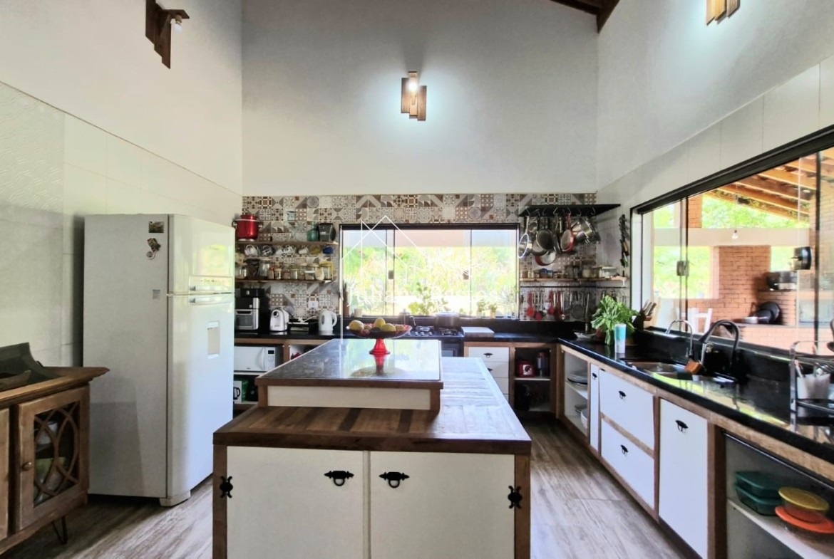 Este imóvel de médio alto padrão oferece um espaço ideal para famílias que buscam conforto e sofisticação. A cozinha é um verdadeiro destaque, equipada com uma ilha central que proporciona um ambiente perfeito para cozinhar e socializar, ao lado temos a sala de jantar que está integrada. O pé direito alto traz uma sensação de amplitude e luminosidade, destacando a elegância do espaço.