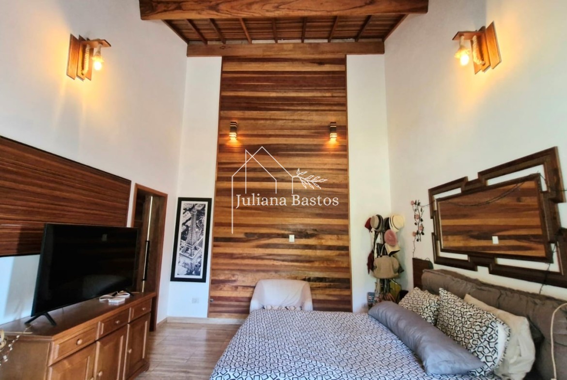 1 suíte ampla com pé direito alto para hospedes projetado para proporcionar conforto e privacidade.