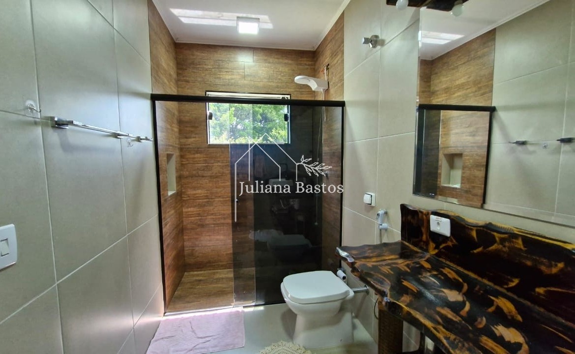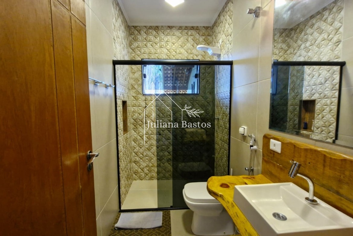 Um banheiro social projetado com atenção aos detalhes, oferecendo conforto e elegância. Com um layout funcional, ele é ideal para atender visitantes e membros da família.